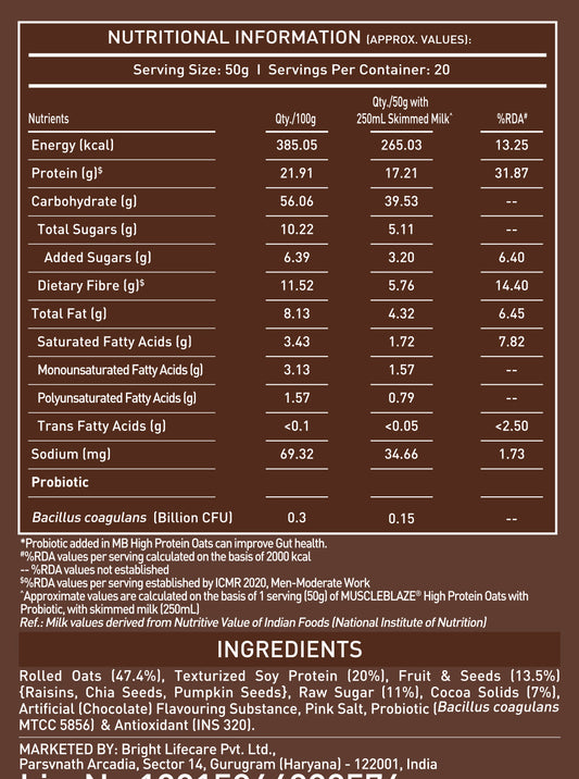 Sold outMuscleBlaze High Protein Oats 100 GM