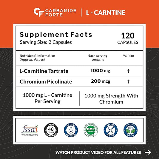 CF Carbamide Forte L Carnitine Supplement 1000mg Capsules for Men & Women | Pre Workout Supplement -Veg Capsules 120 Count