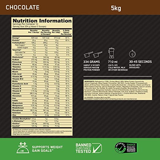 OPTIMUM NUTRITION (ON) Serious Mass Gainer powder (Veg) - 5 kg (Chocolate)